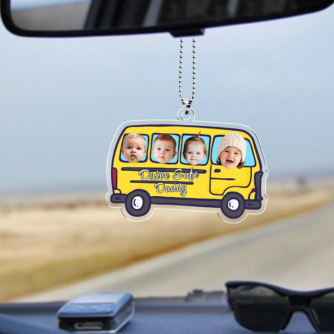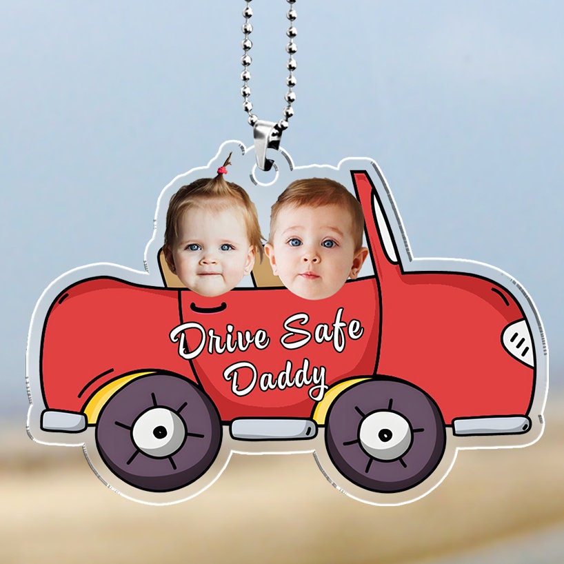 Customized Drive Safe Daddy Acrylic Car Hanging with Photo - Personalized Father's Day Gift for New Dad & Husband