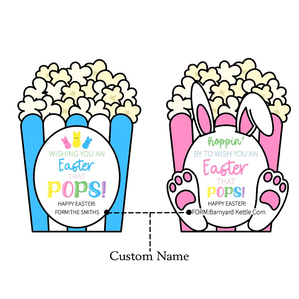 Personalized Design - These adorable custom stickers feature charming Easter bunny and popcorn elements, making them perfect for celebrating the festive season, allowing you to add a message for a personal touch and bring joy and creativity to your holiday celebrations!
