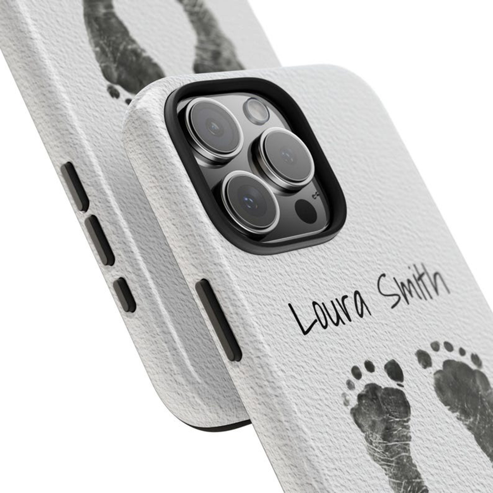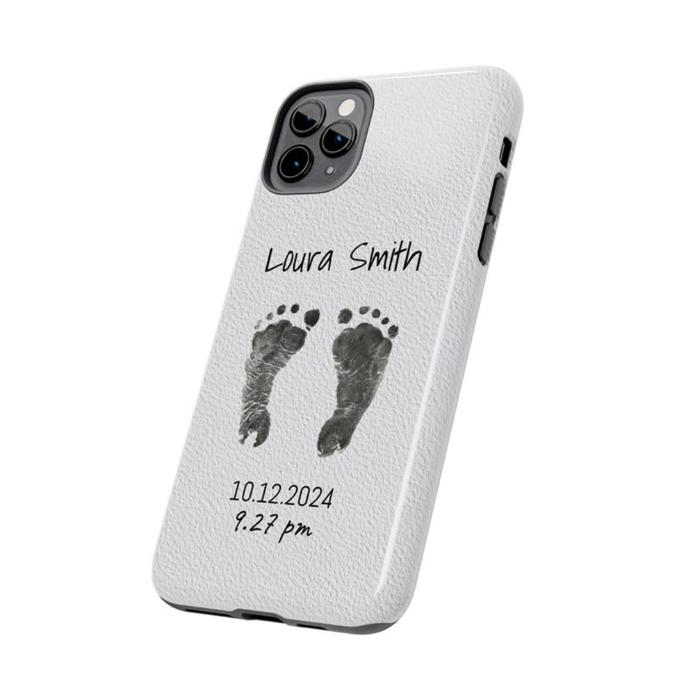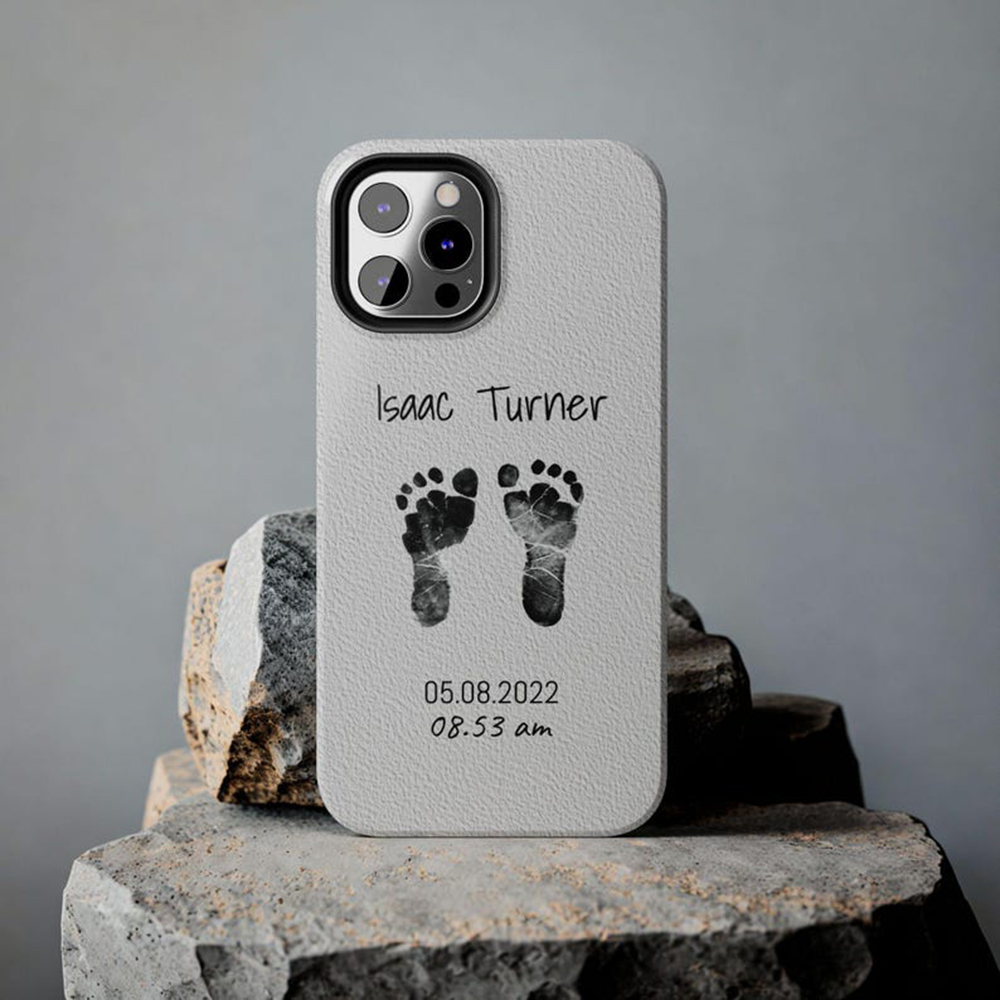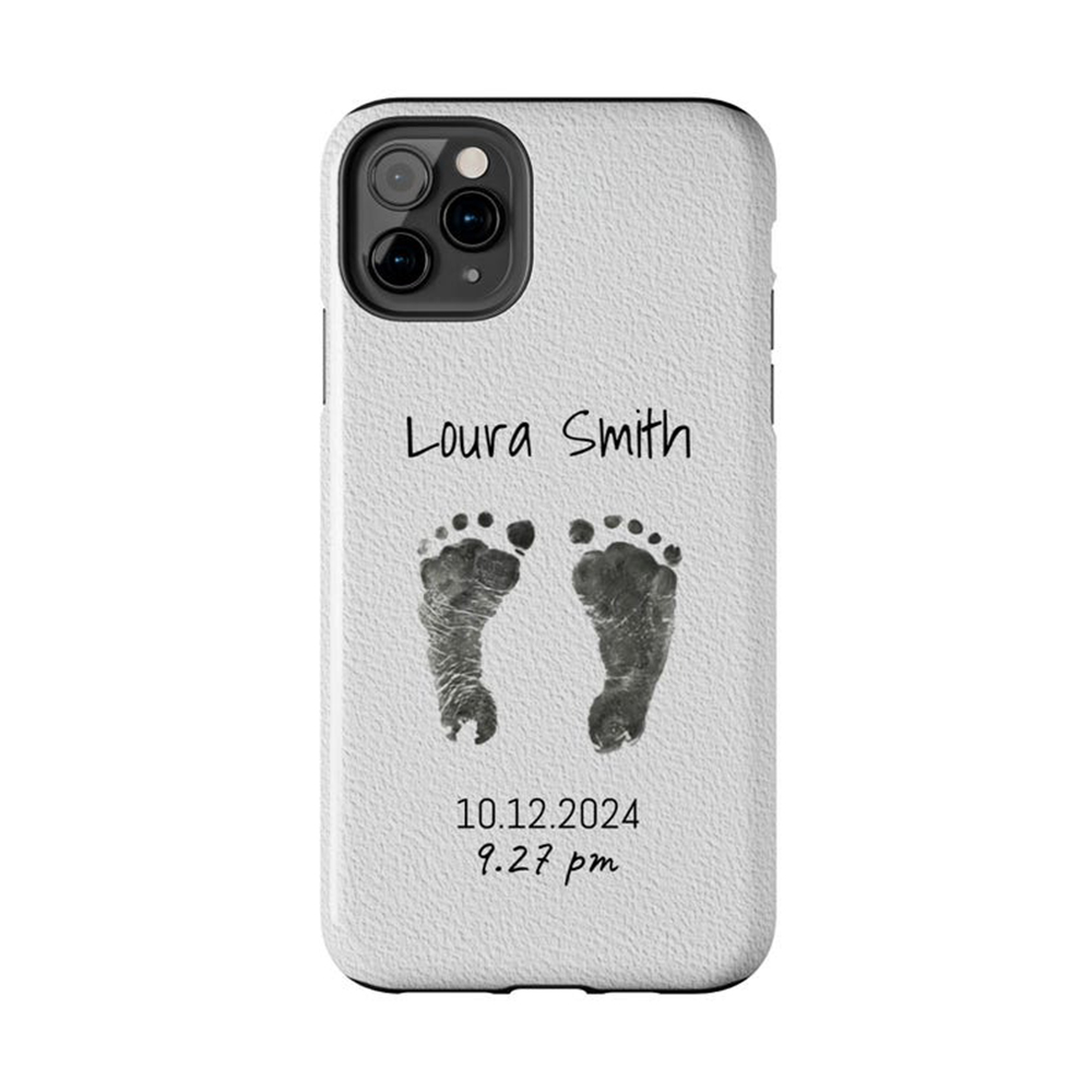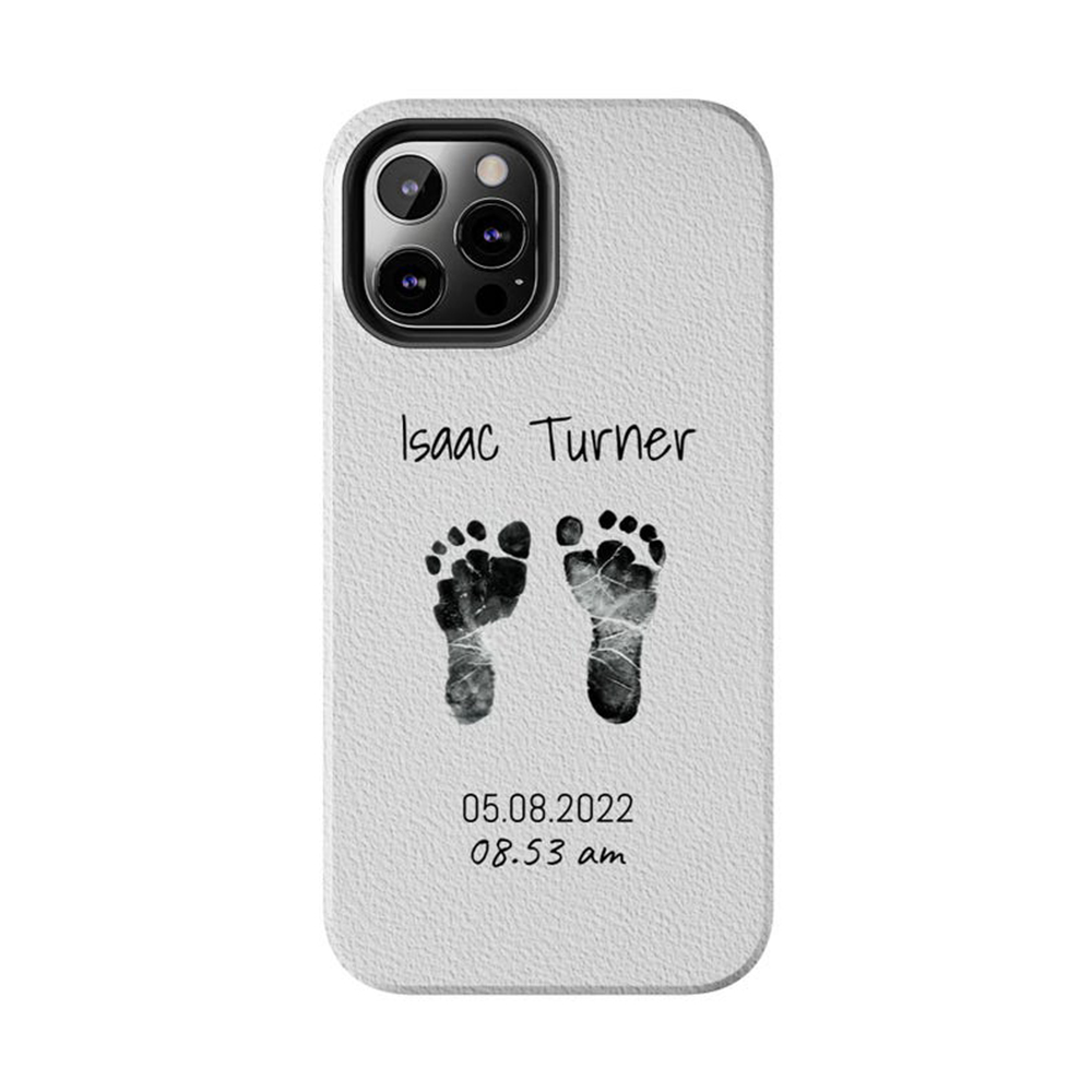 This personalized baby footprint phone case is the perfect gift for new dads, especially for Father's Day. By customizing your baby's footprints on the phone case, you can create a one-of-a-kind keepsake that not only preserves precious moments of your baby's growth, but also reminds your father of that special moment.