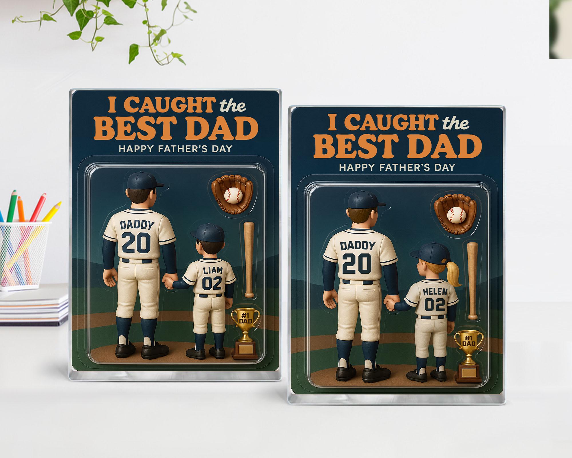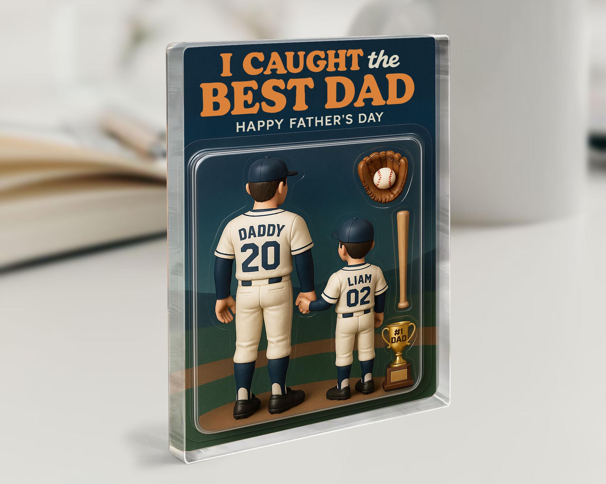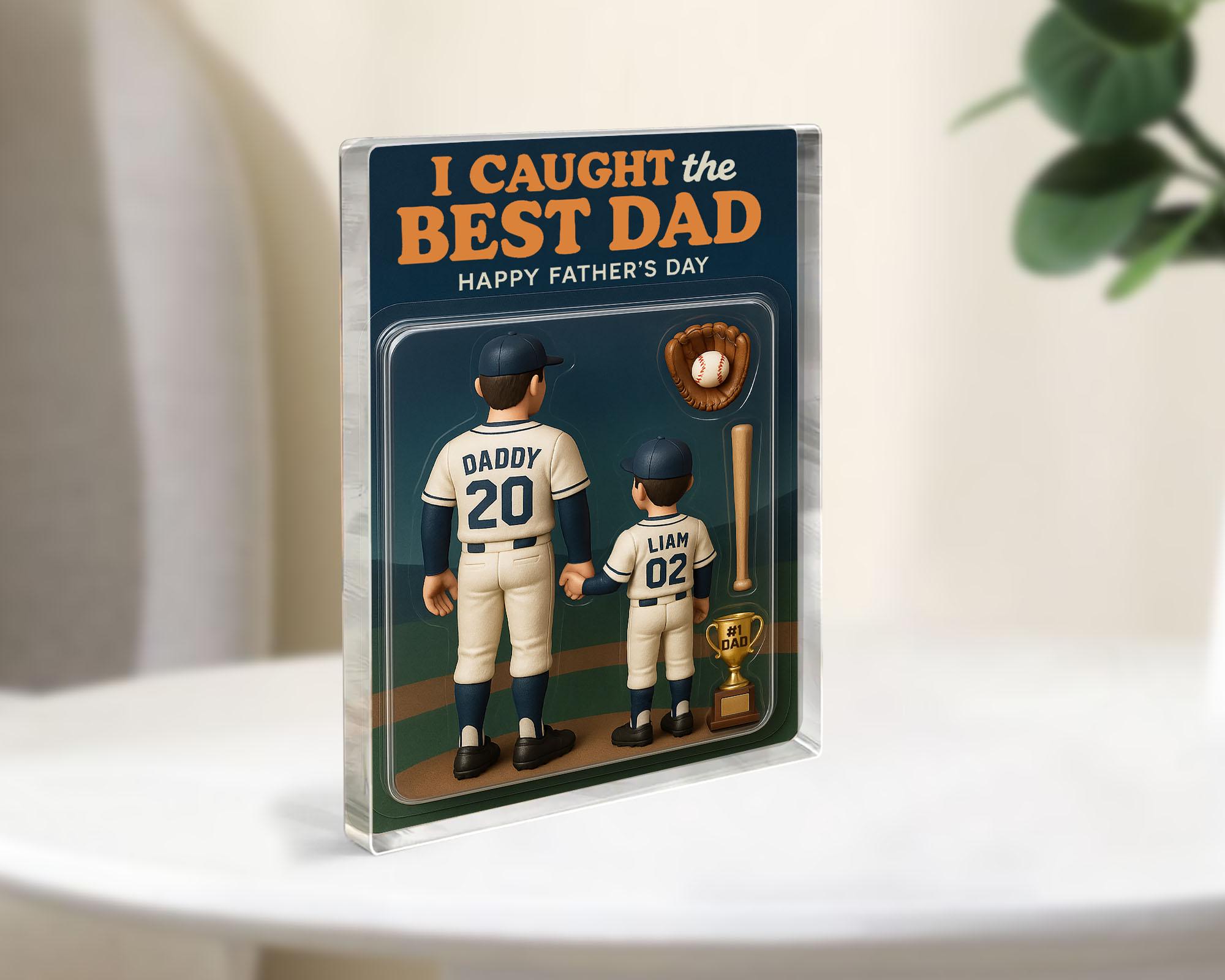 Personalized Fathers Day Gift For Dad, I Caught The Best Dad Baseball Gift, Custom Figure Acrylic Block, Baseball Dad Gift, Gift For Husband