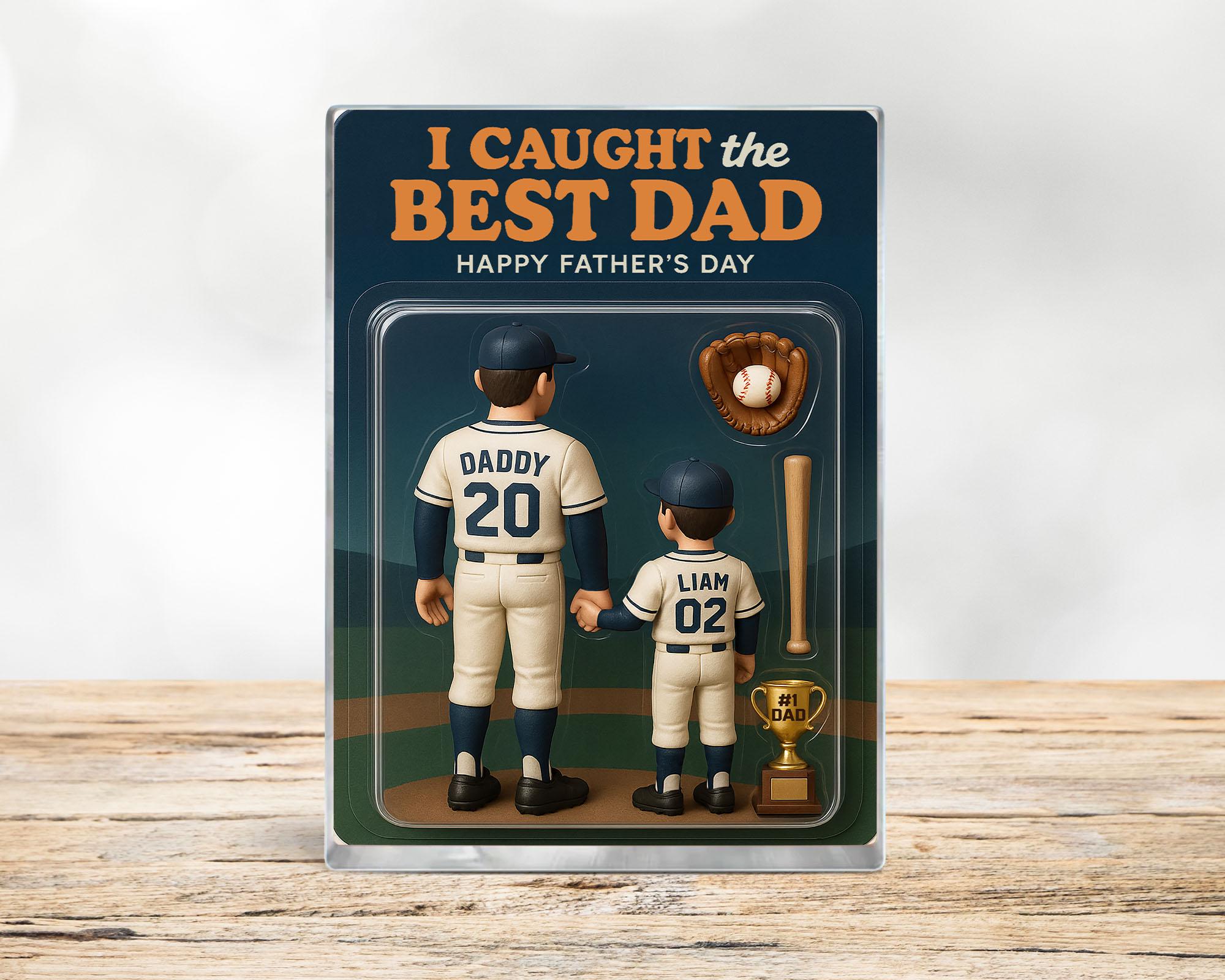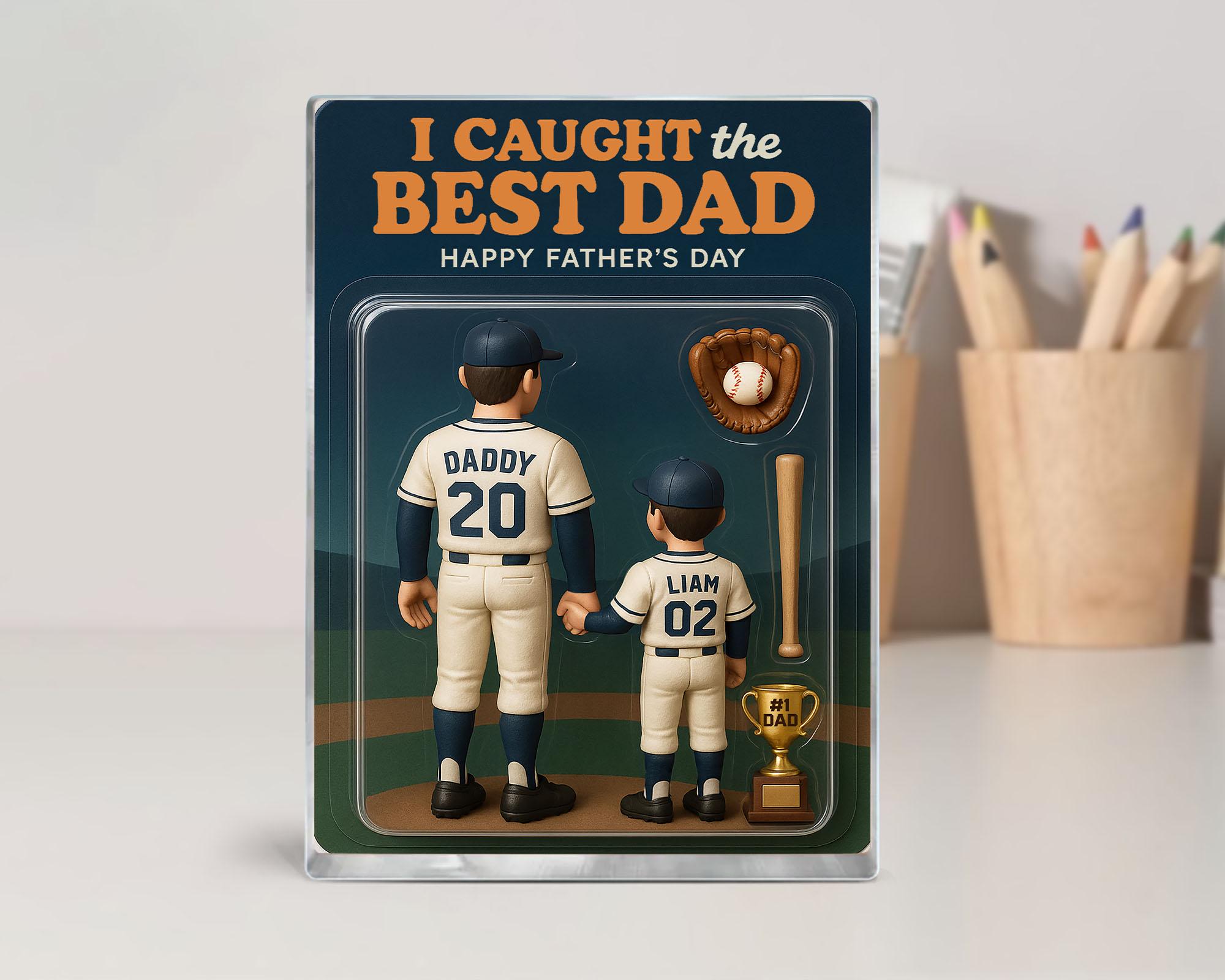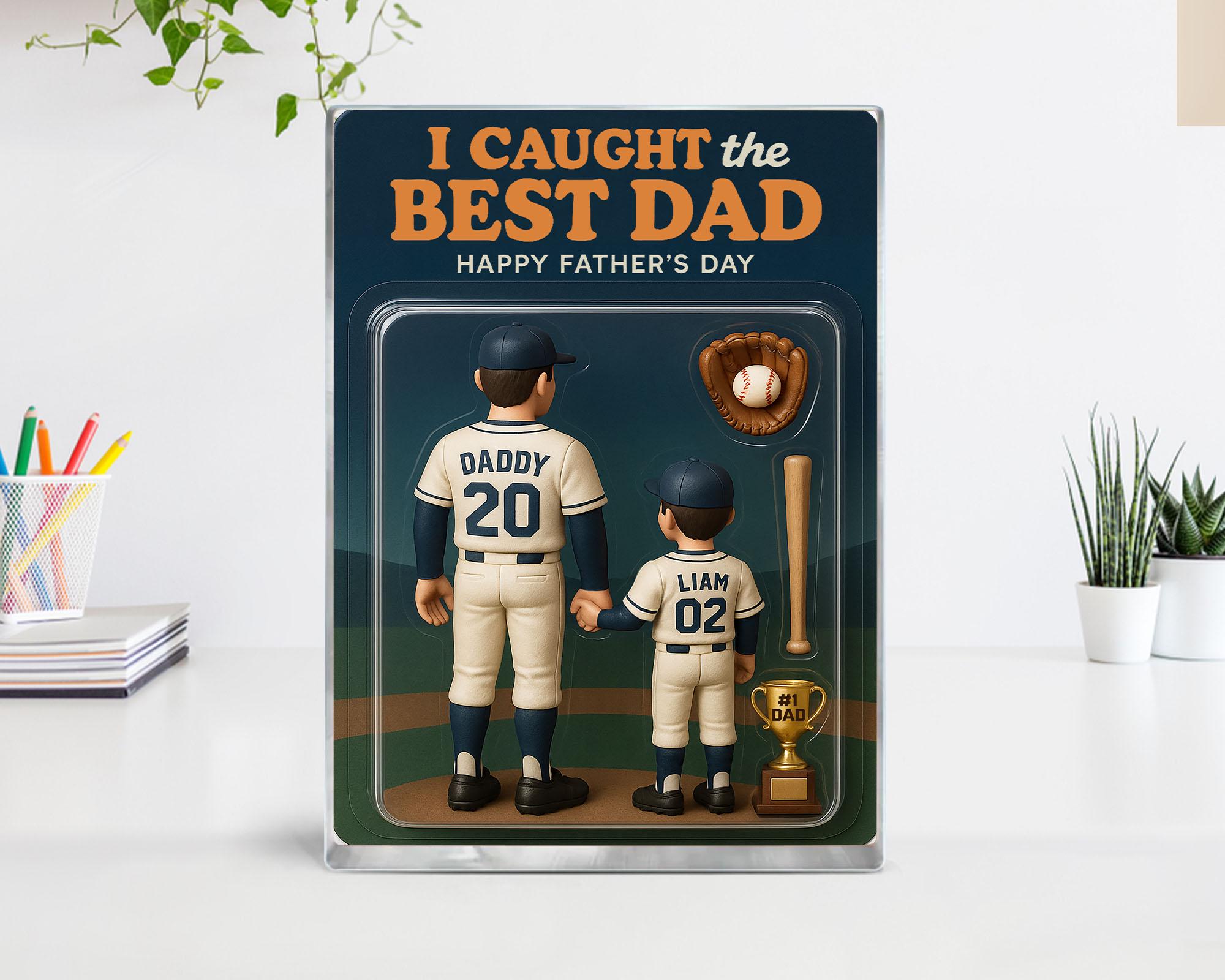 Personalized Fathers Day Gift For Dad, I Caught The Best Dad Baseball Gift, Custom Figure Acrylic Block, Baseball Dad Gift, Gift For Husband