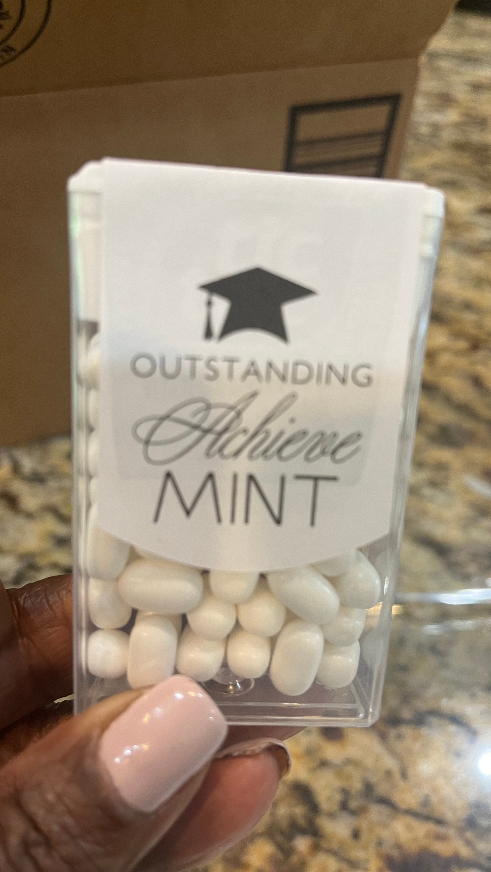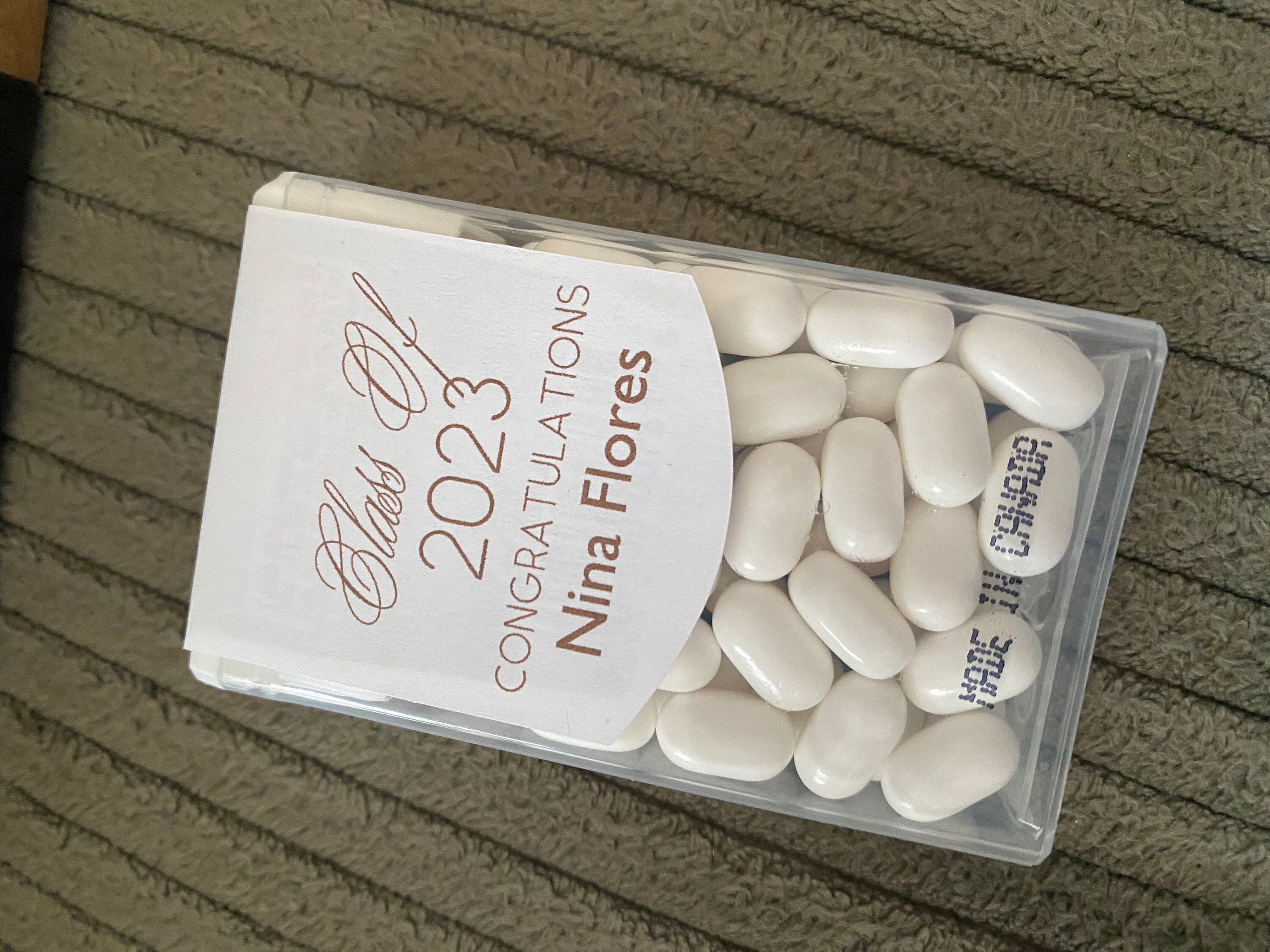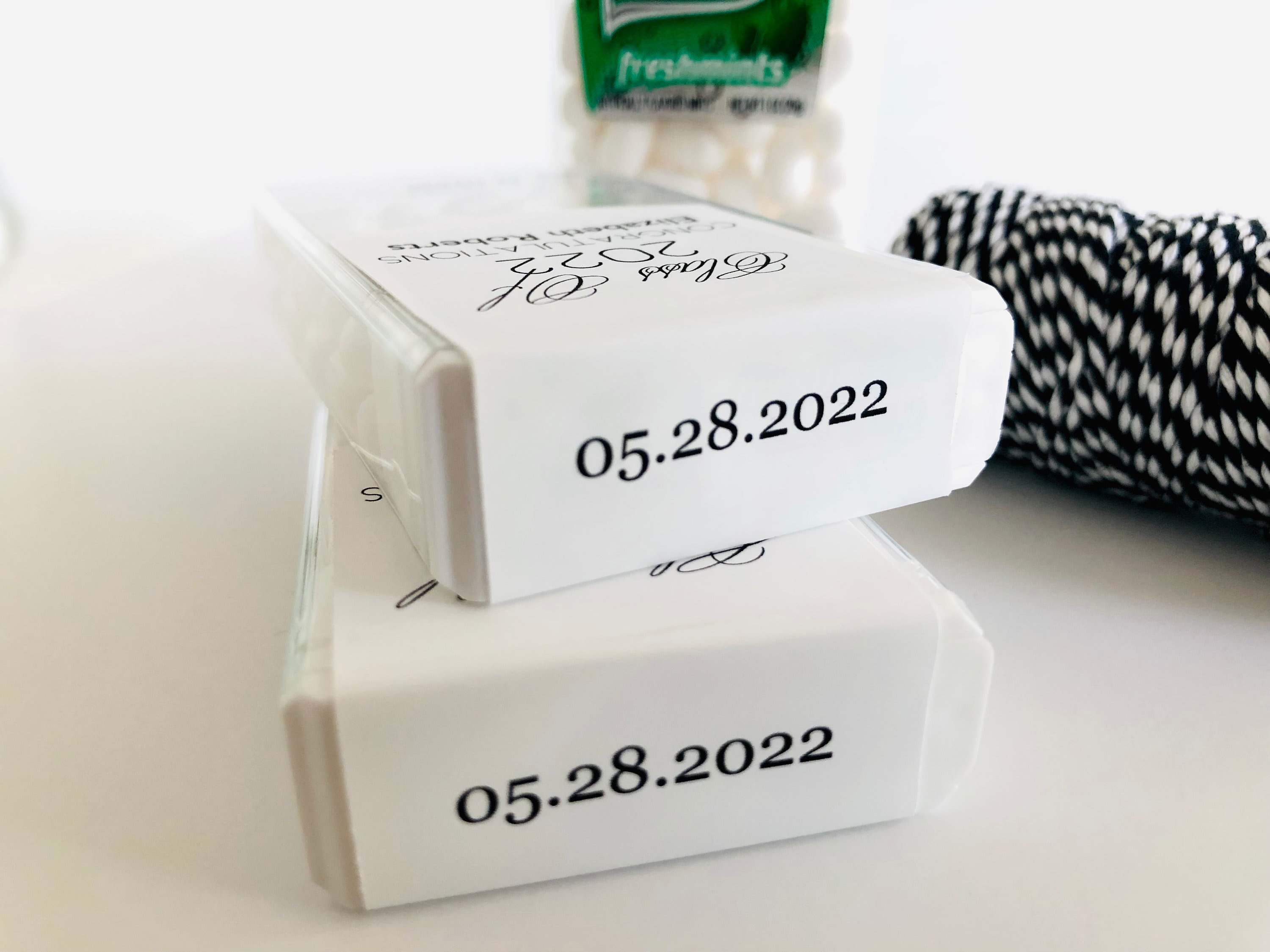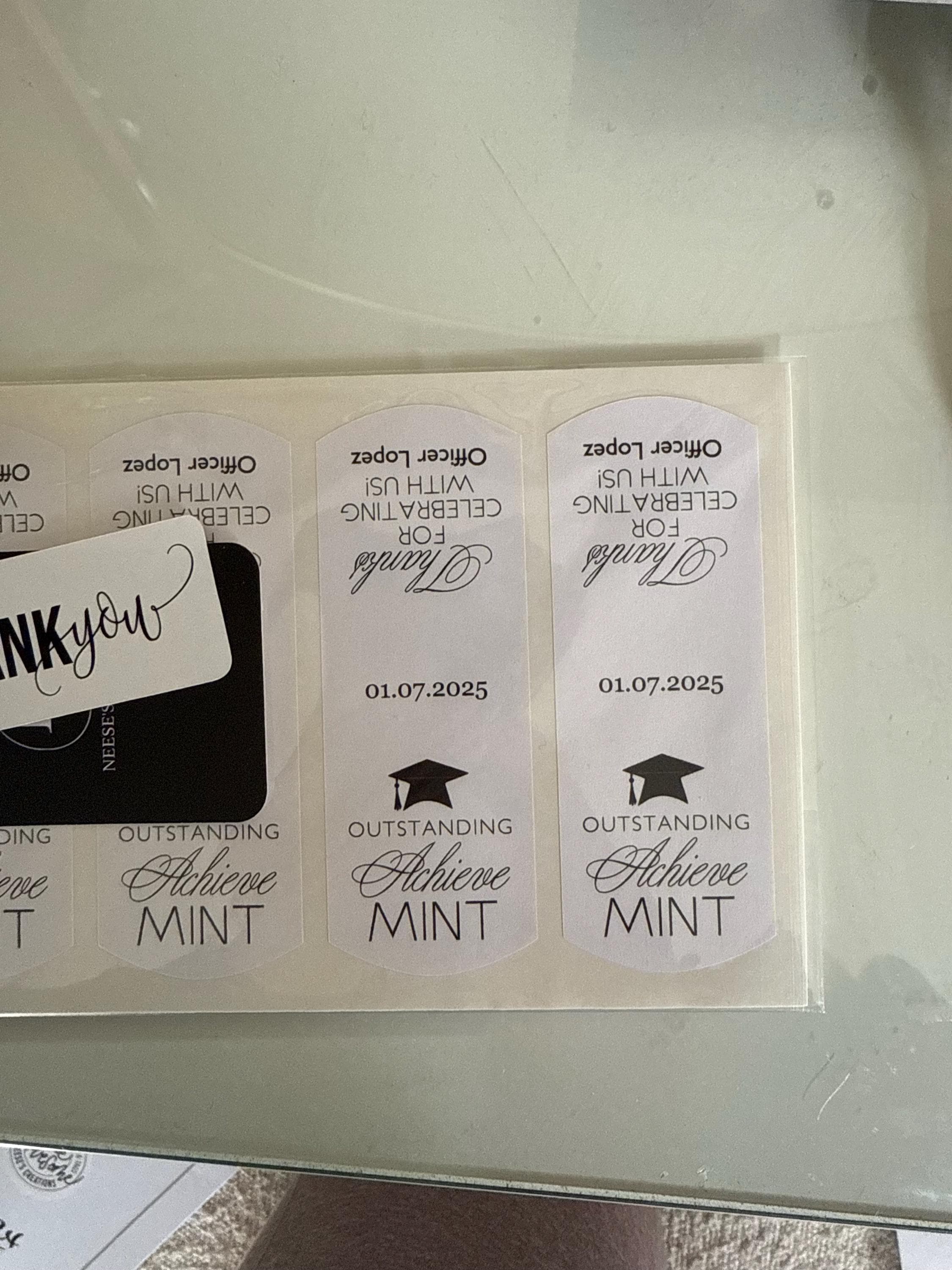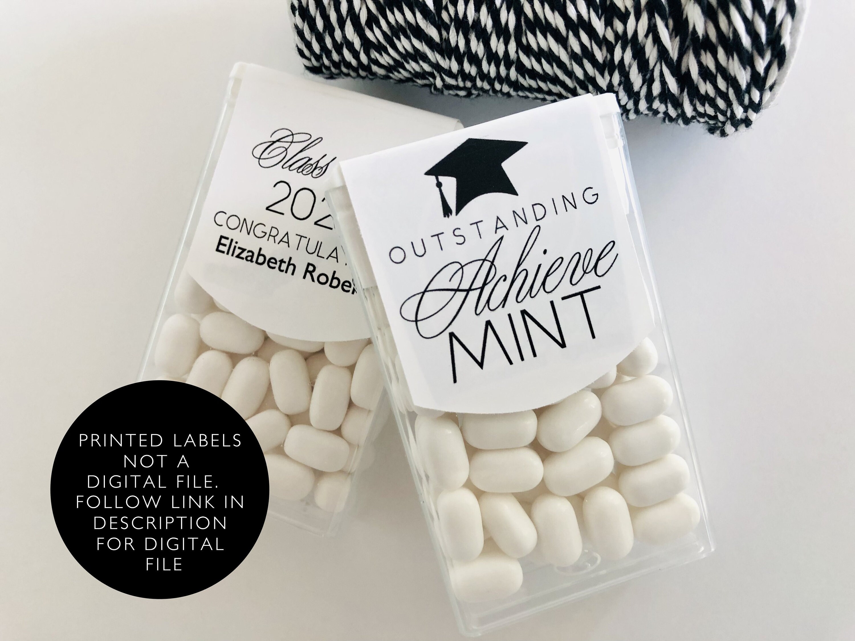 Class of 2025 edible mints would be perfect graduation party favors for your guest to enjoy. These favor sticker labels can be personalized with the graduates name and date on the top and a sweet thank you message on the back. (Mints NOT included, this listing is for the labels only).