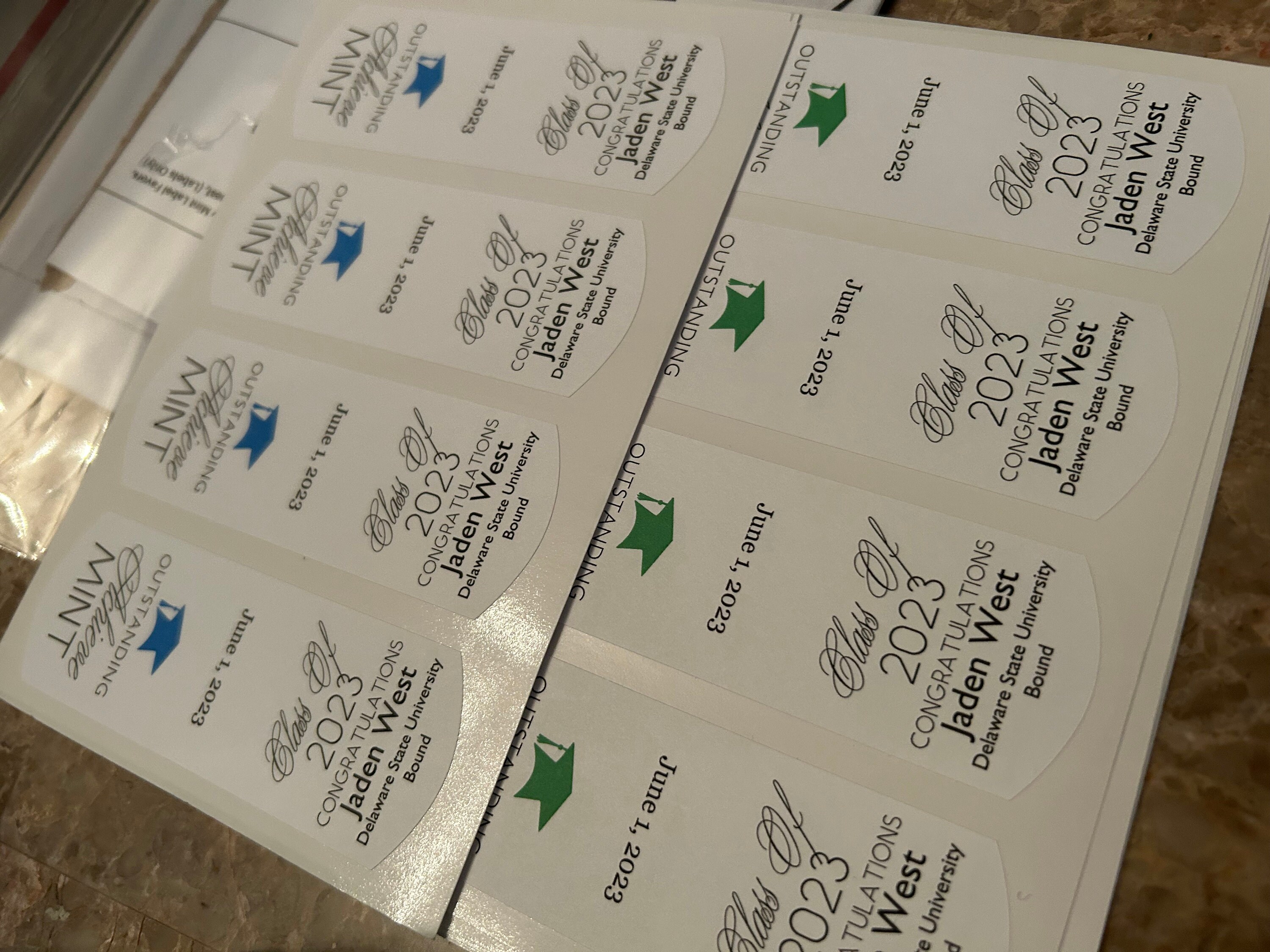 > Back label says "Class of 20xx Congratulations (insert name)" unless you request a different message