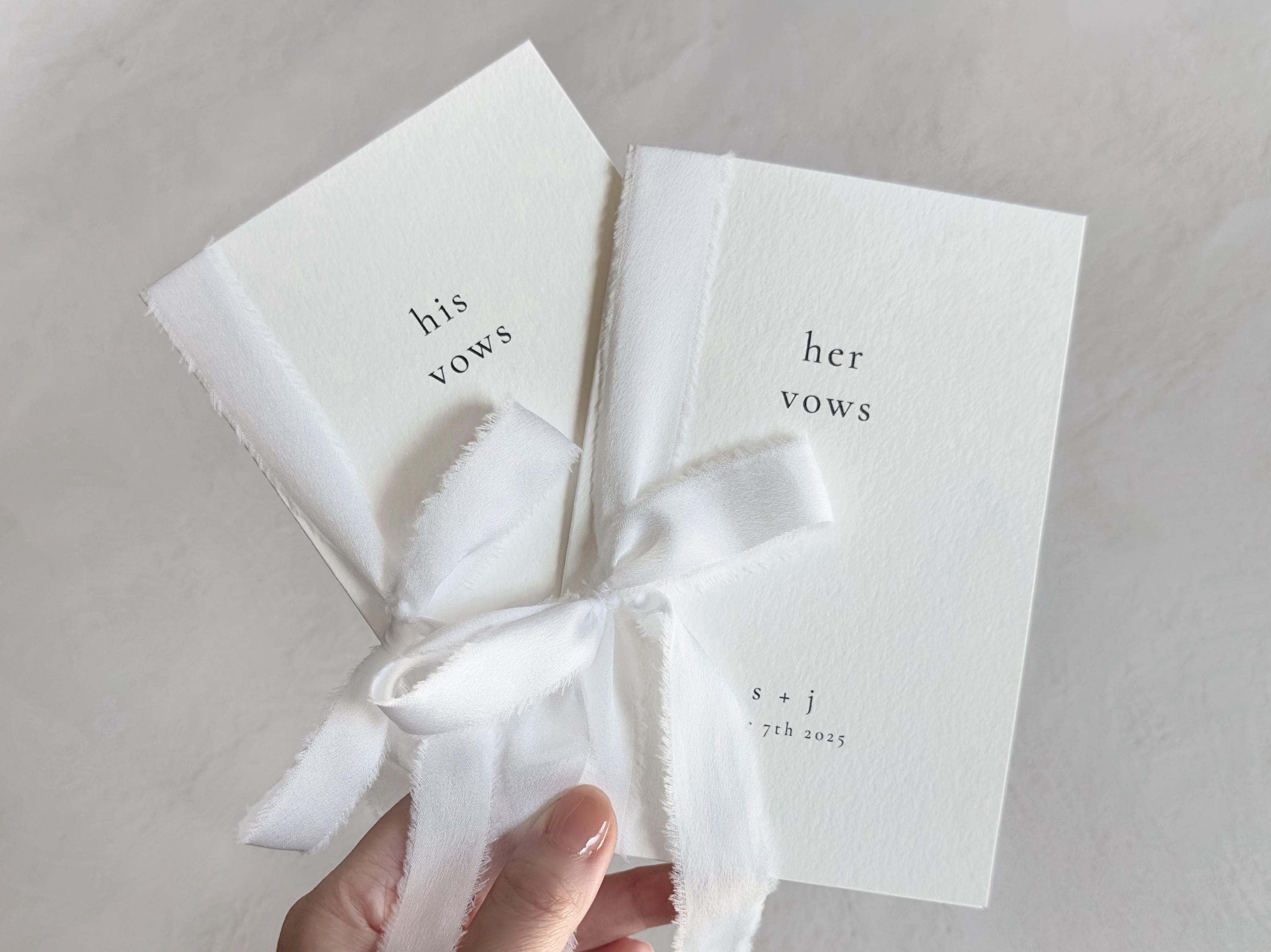 Set of 2 Personalized Wedding Vow Books His and Her Paper Vow Books Customized Wedding Vow Book with Silk Ribbon gift for Bride and Groom